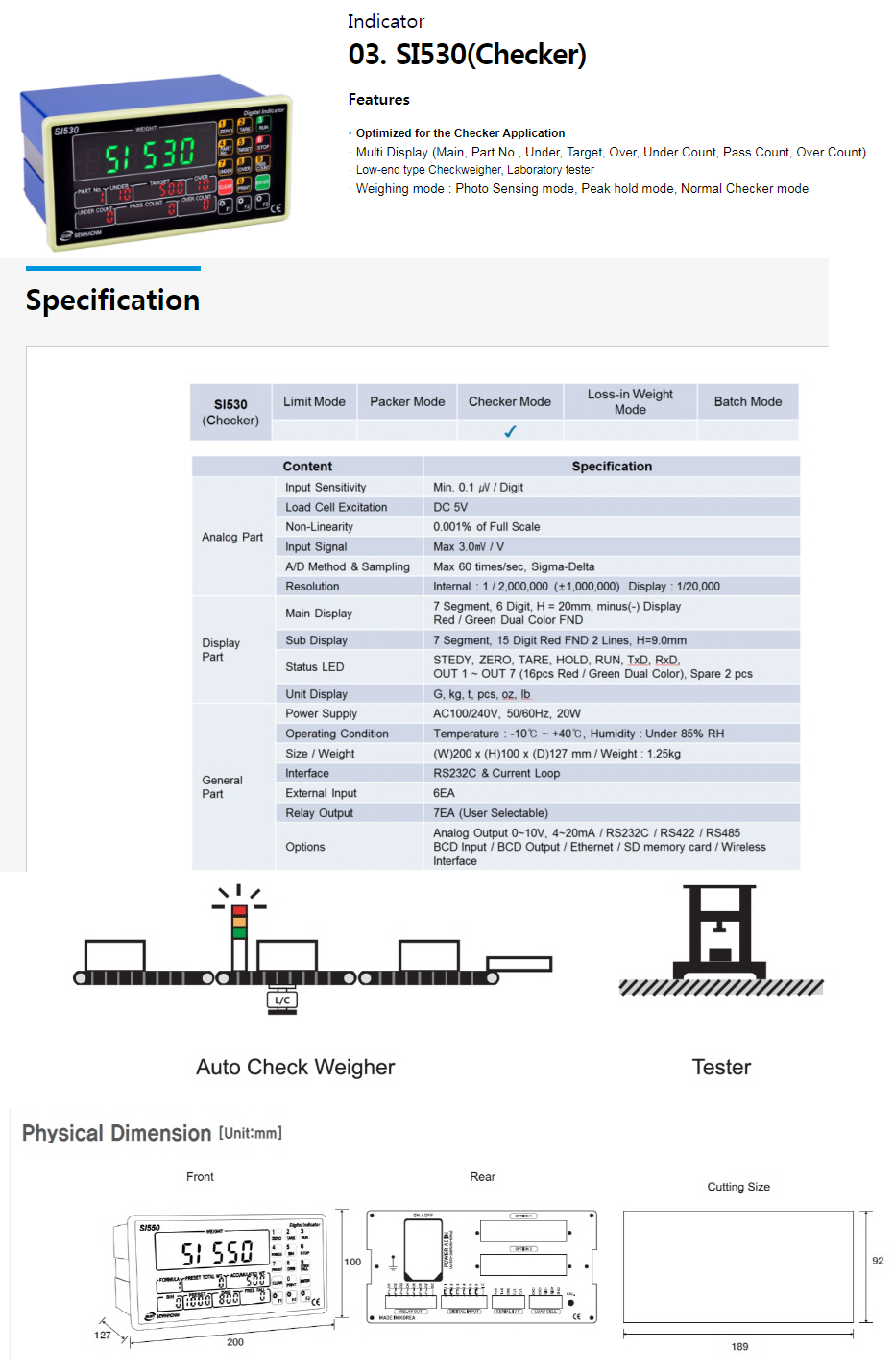 • Chuyên dùng cho cân kiểm tra sản phẩm