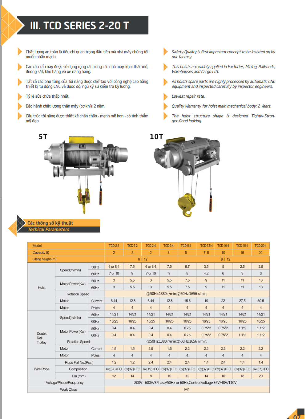 Mã sản phẩm: PALANG DẦM ĐÔI TCD SERIES